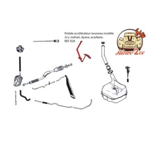 Alimentation et carburation, Cable, pédale et accessoires accélérateur, Carrosserie 2cv, Carrosserie 2cv Nouveau modèle après 1970