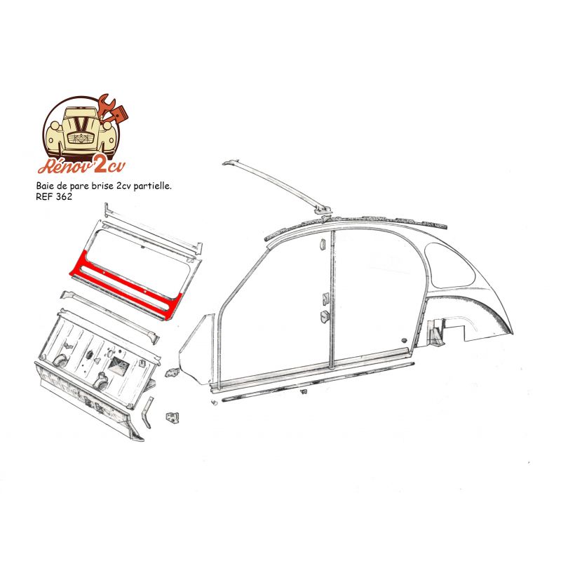 Baie de pare brise 2cv partielle, NOUVEAU MODELE.