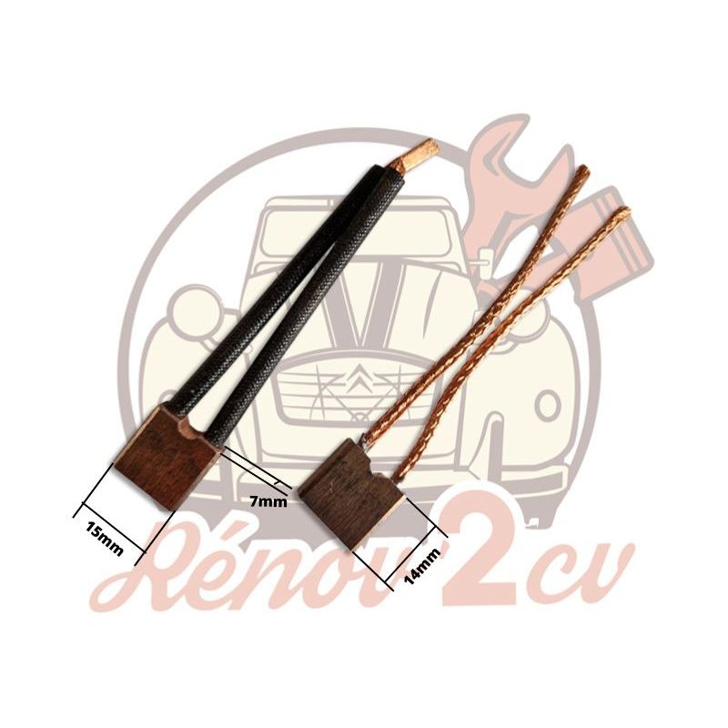 Jeu de charbon pour démarreur Paris-Rhone 12 volts 2cv, ami6, ami8, dyane, méhari, visa. Vendu par 2. PSX 119-120, 92656W, Valéo 182070.