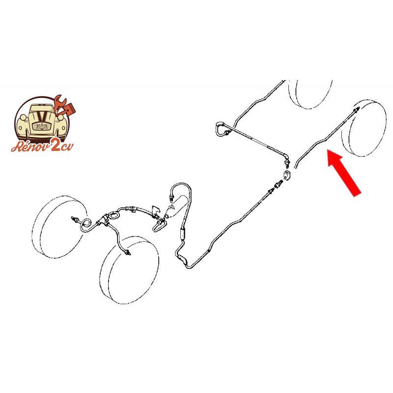 Tuyau de frein sur bras arrière gauche raccord banjo pour 2cv ancien modèle jusqu’à 1964. Diamètre 6.35mm conforme à l’origine.