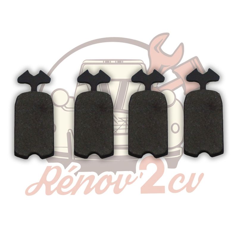 Jeu de 4 plaquettes pour étrier de frein. Se monte sur 2cv, méhari, dyane, acadiane et ami8.