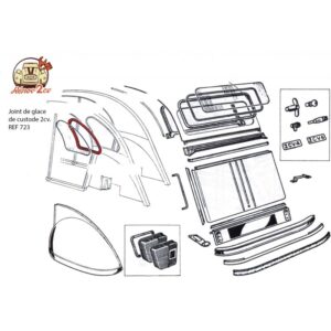 Joint de glace de porte arrière 2cv Nouveau Modèle. Pour côté conducteur ou passager. Pour fixation de glace par le joint, principe de montage à partir de janvier 1963. Joint