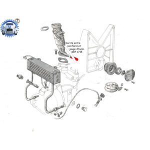 Cette durite se positionne entre le reniflard et le tube de guidage de la jauge d’huile. Longueur 80mm diamètre intérieur 8mm. Prévoir 2 colliers pour la maintenir en