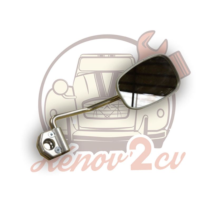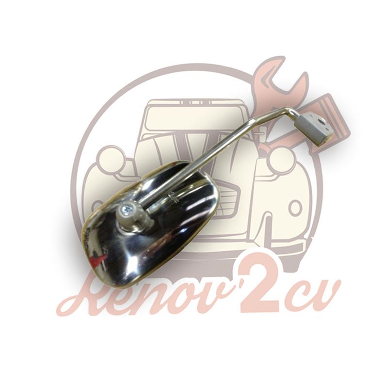 Retroviseur pour 2cv coté droit en inox haute qualité. Cuvelage et bras en inox ! Se monte coté passager. La pièce.