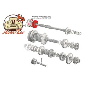 Roulement arbre primaire avec circlips pour 2cv Méhari Dyane Acadiane