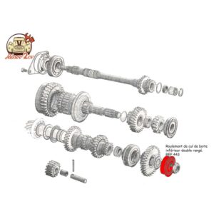 Roulement de cul de boite inferieur double range pour 2cv, Méhari, Dyane, Acadiane