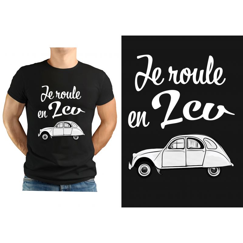 T-shirt NOIR ” Je roule en 2cv “