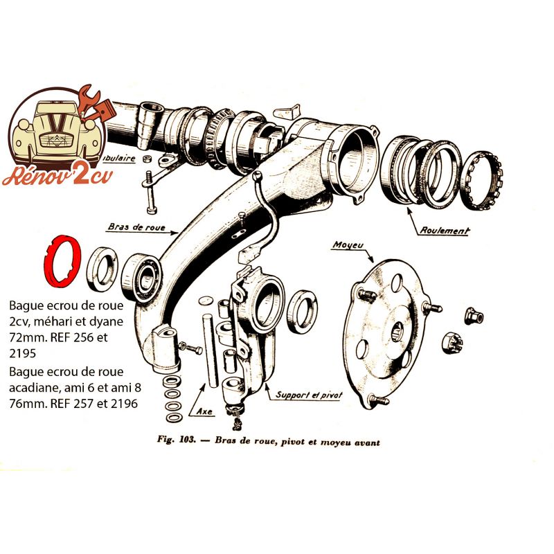 Bague écrou de roulement 2cv Mehari Dyane 72mm